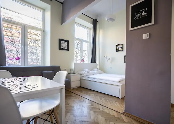 Elegant Apartment Copernicus includes self-catering facilities like an electric kettle, a refrigerator, and kitchenware for guests' convenience. This apartment is also 750 metres from Leo Express bus stop and within a 700-metre distance of Centrum underground station.